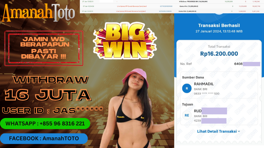 AMANAHTOTO JACKPOT DI PERMAINAN SLOT RP. 16.200.000 LUNAS