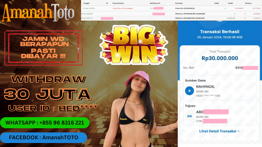 Amanahtoto – Adalah Agen judi online terpercaya dan pastinya gacor yang telah membuktikan kemenangan member lewat bukti jeckpot. Dengan bukti jeckpot setiap player dapat mengetahui bahwa situs Amanahtoto memiliki tingkat kualitas terbaik dari kemenangan di game dan dijamin aman terpercaya untuk player yang ingin mencoba merasakan kemenangan dalam permainan judi online di Indonesia.