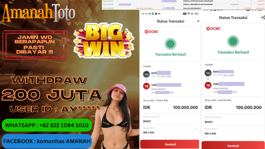 Dengan kemenangan Player di Amanahtoto Khususnya member yang beruntung Hari ini kita dapat melihat kami sebagai agen terpercaya yang selalu membayar kemenangan member secara lunas.