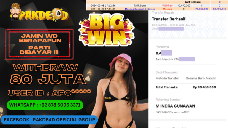 PAKDE4D JACKPOT DI PERMAINAN LIVE CASINO BACCARAT RP. 80.450.000 LUNAS