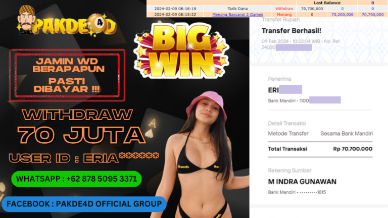 PAKDE4D JACKPOT DI PERMAINAN LIVE CASINO BACCARAT RP. 70.700.000 LUNAS