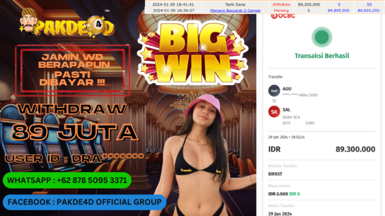PAKDE4D JACKPOT DI PERMAINAN LIVE CASINO BACCARAT RP. 89.300.000 LUNAS