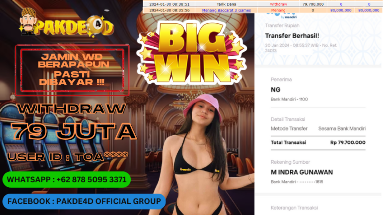 PAKDE4D JACKPOT DI PERMAINAN LIVE CASINO BACCARAT RP. 79.700.000 LUNAS