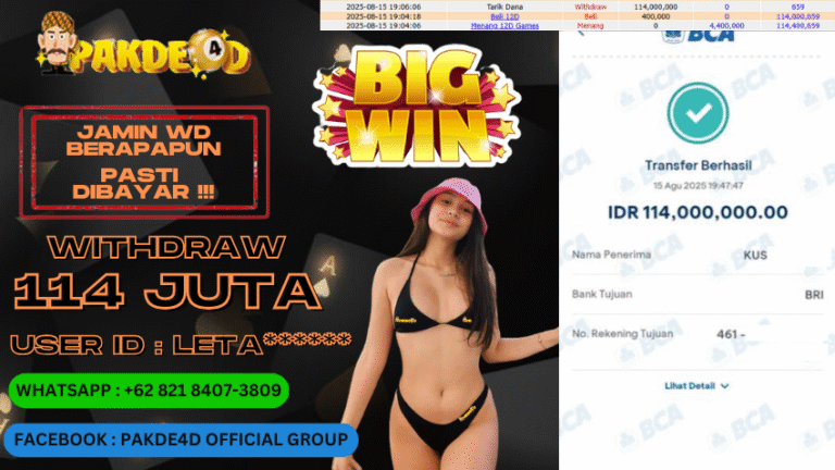PAKDE4D JACKPOT DI PERMAINAN SLOT RP. 150.000.000,- LUNAS