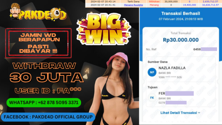 PAKDE4D JACKPOT DI PERMAINAN SLOT RP. 31.000.000 LUNAS