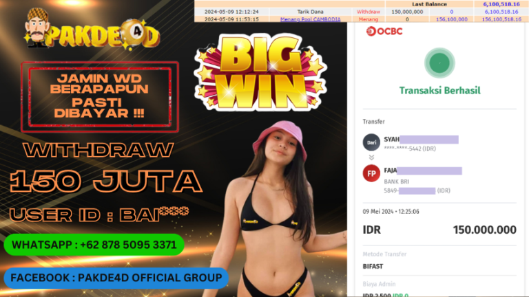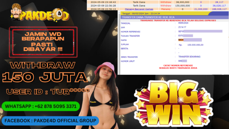 PAKDE4D JACKPOT DI PERMAINAN LIVE CASINO BACCARAT RP. 150.000.000,- LUNAS