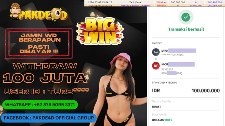 PAKDE4D JACKPOT DI PERMAINAN LIVE CASINO BACCARAT RP. 100.000.000,- LUNAS