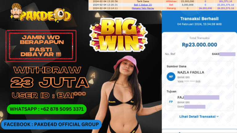 PAKDE4D JACKPOT DI PERMAINAN LIVE GAME TOTO MACAU 4D RP. 23.000.000 LUNAS