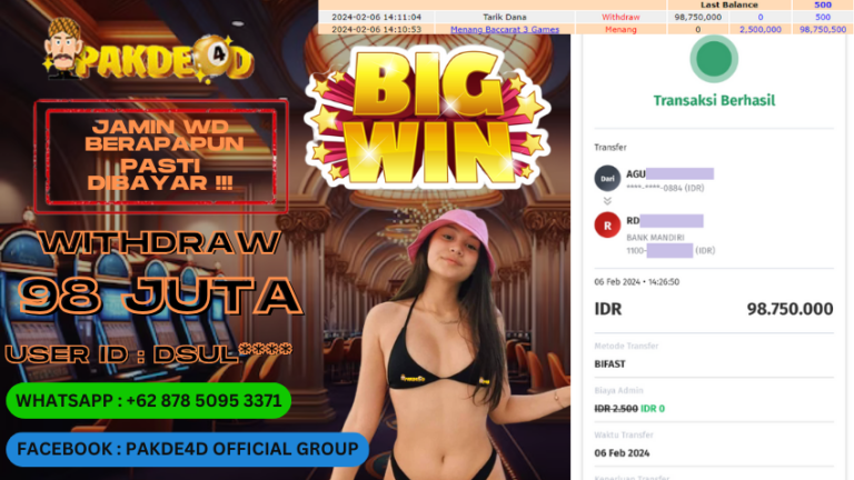 PAKDE4D JACKPOT DI PERMAINAN LIVE CASINO BACCARAT RP. 97.500.000 LUNAS