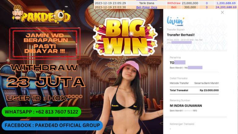 PAKDE4D – Situs Bandar Togel Online, Live Casino dan Slot Online Terpercaya yang terbukti membayar berapapun kemenangan Anda. Jika Anda masih mencari Situs Bandar Terpercaya, jangan ragu untuk bergabung bersama PAKDE4D. Dalam 1 akun Anda bisa menikmati semua permainan yang disediakan dengan minimal deposit hanya Rp. 10.000,- melalui transaksi Bank Lokal Indonesia dan Dompet Digital…