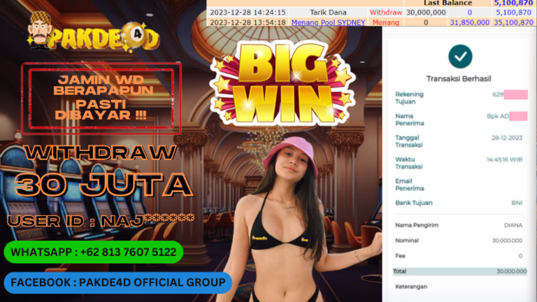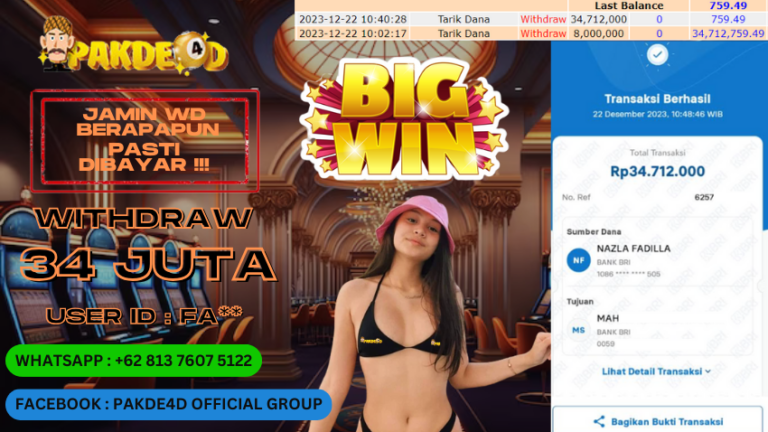 PAKDE4D JACKPOT DI PERMAINAN SLOT RP. 34.712.000 LUNAS