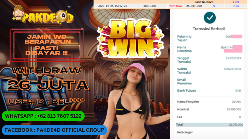 PAKDE4D JACKPOT DI PERMAINAN SLOT RP. 26.781.000 LUNAS