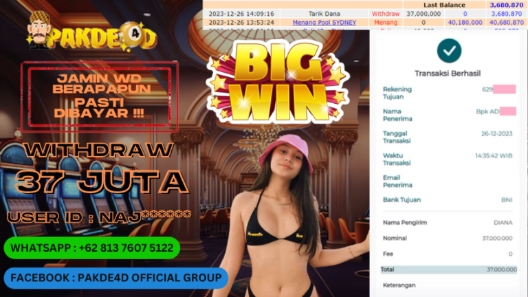 PAKDE4D JACKPOT DI PERMAINAN TOGEL PASARAN SYDNEY POOLS RP. 37.000.000 LUNAS