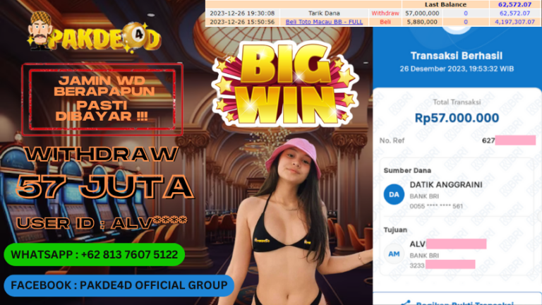 PAKDE4D JACKPOT DI PERMAINAN SLOT RP. 57.000.000 LUNAS