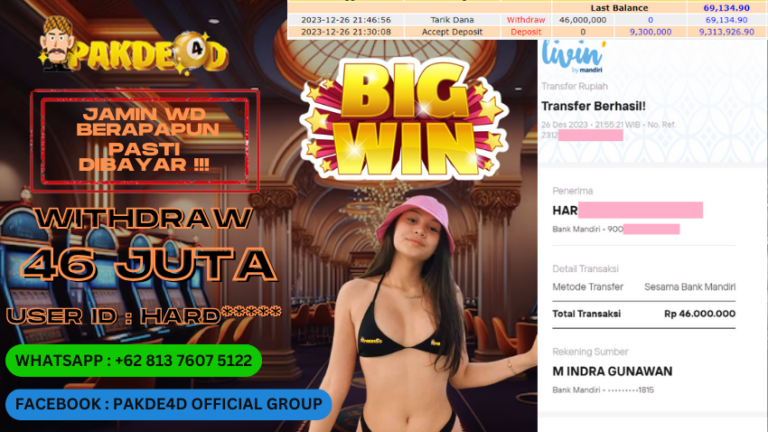 PAKDE4D JACKPOT DI PERMAINAN SLOT RP. 46.000.000 LUNAS