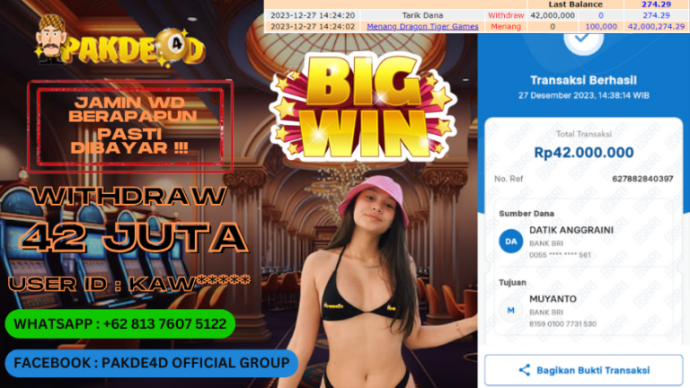 PAKDE4D JACKPOT DI PERMAINAN LIVE CASINO DRAGON TIGER RP. 42.000.000 LUNAS