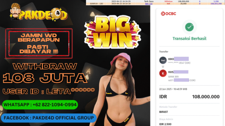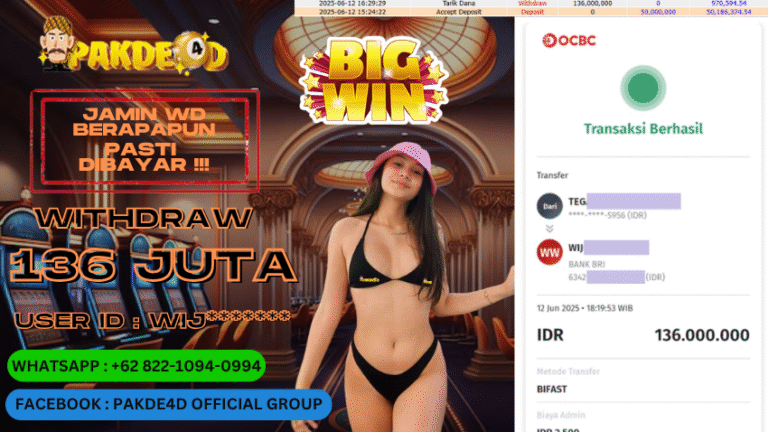 PAKDE4D JACKPOT DI PERMAINAN SLOT RP. 136.000.000,- LUNAS