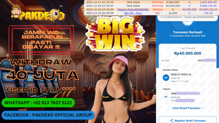 PAKDE4D JACKPOT DI PERMAINAN SLOT RP. 50.000.000 LUNAS