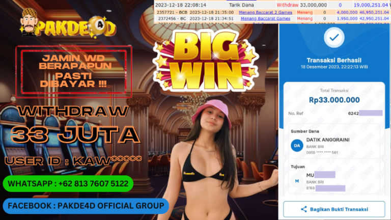 PAKDE4D JACKPOT DI PERMAINAN LIVE CASINO BACCARAT RP. 33.000.000 LUNAS