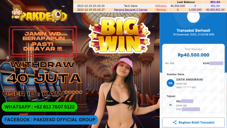 PAKDE4D JACKPOT DI PERMAINAN SLOT RP. 39.000.000 LUNAS