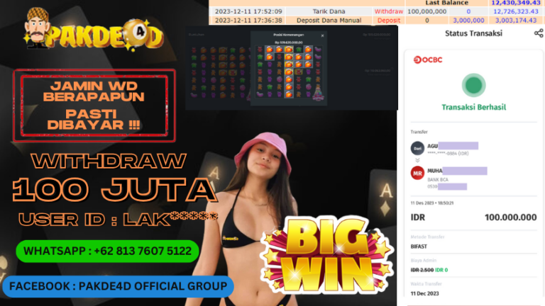 PAKDE4D JACKPOT DI PERMAINAN SLOT RP. 100.000.000 LUNAS