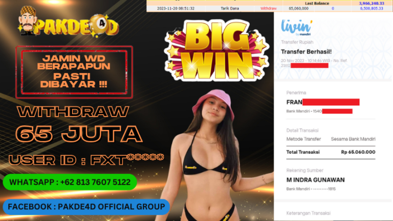 PAKDE4D JACKPOT DI PERMAINAN SLOT RP. 65.060.000 LUNAS