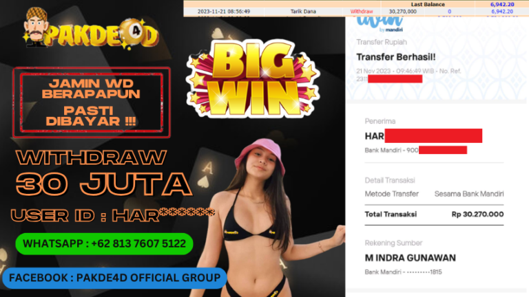 PAKDE4D JACKPOT DI PERMAINAN SLOT RP. 30.000.000 LUNAS