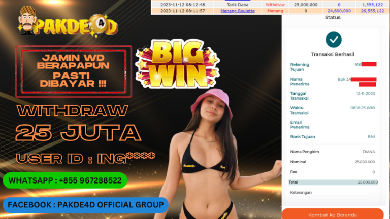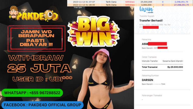 PAKDE4D JACKPOT DI PERMAINAN SLOT RP. 25.000.000 LUNAS