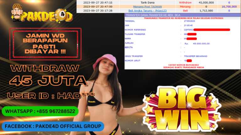 PAKDE4D JACKPOT DI PERMAINAN TOGEL PASARAN TAIWAN RP. 45.000.000 LUNAS