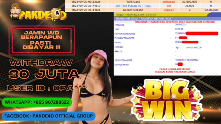 PAKDE4D JACKPOT DI PERMAINAN SLOT RP. 30.000.000 LUNAS