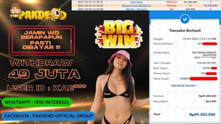 PAKDE4D JACKPOT DI PERMAINAN TOGEL PASARAN GENTING12 RP. 49.300.000 LUNAS