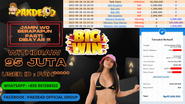 PAKDE4D JACKPOT DI PERMAINAN TOGEL PASARAN TOTO MACAU4D RP. 95.000.000 LUNAS