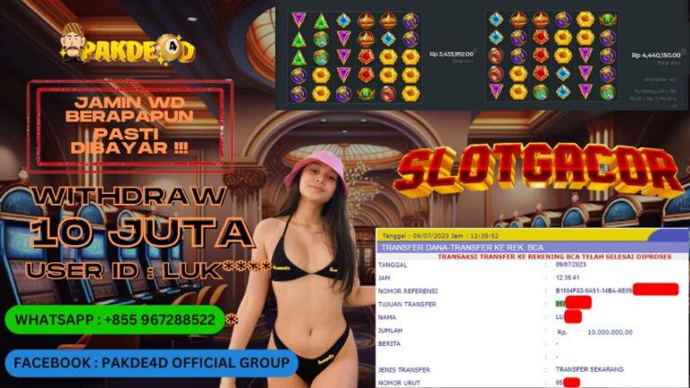 PAKDE4D JACKPOT DI PERMAINAN SLOT RP. 10.000.000 LUNAS