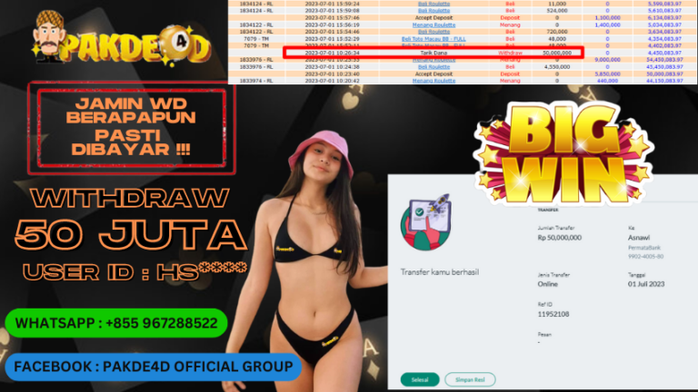 PAKDE4D JACKPOT DI PERMAINAN LIVE CASINO RP. 50.000.000 LUNAS