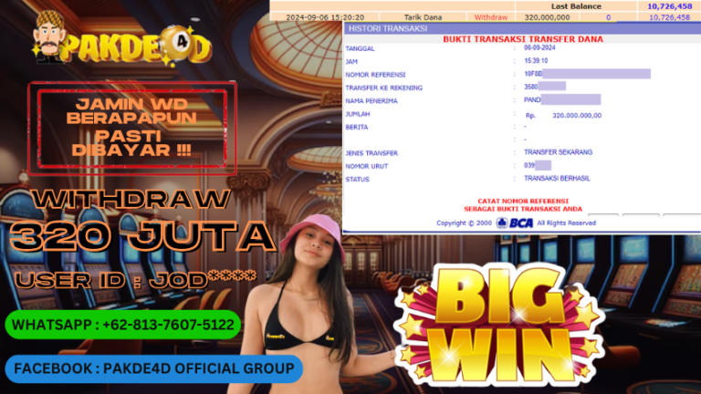 PAKDE4D JACKPOT DI PERMAINAN SLOT RP. 320.000.000,- LUNAS