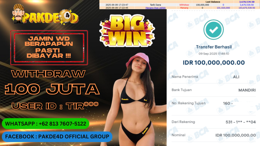 PAKDE4D JACKPOT DI PERMAINAN JAPAN POOLS RP. 100.000.000,- LUNAS