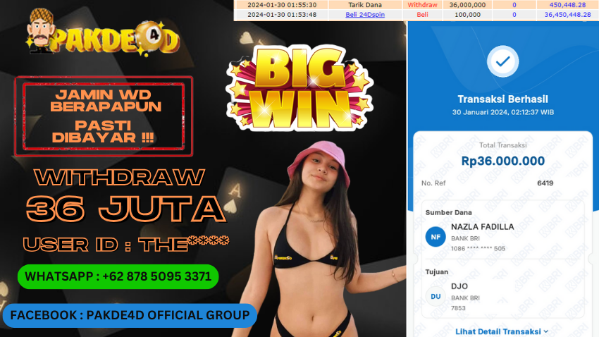 Selamat Kepada Member Setia PAKDE4D dengan USER ID : THE**** di PERMAINAN LIVE CASINO 12D SPIN sebesar Rp. 36.000.000,- LUNAS langsung mendarat ke rekening tanpa bertele – tele. Terimakasih telah mempercayakan PAKDE4D sebagai Situs Bandar Terpercaya dan Terjamin Aman! Tunggu apalagi? Daftar sekarang juga bersama PAKDE4D dan dapatkan berbagai promo menarik setiap harinya.