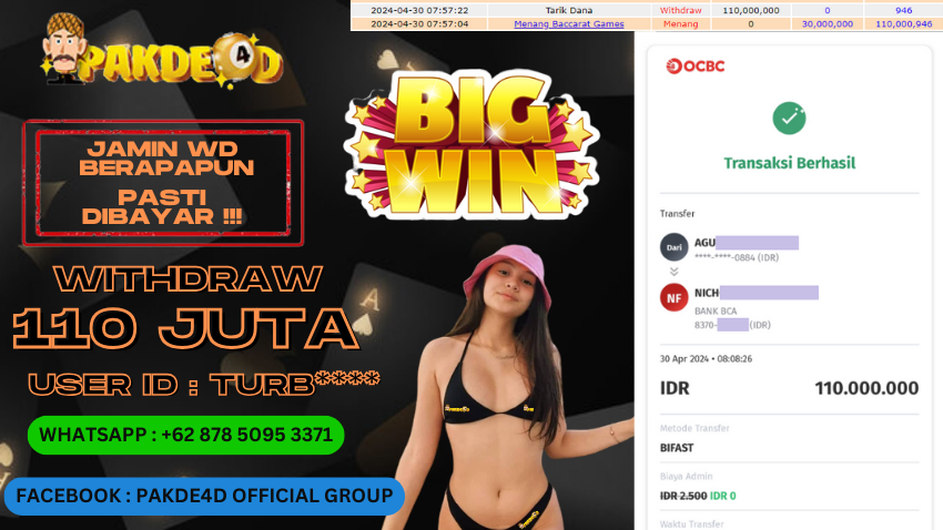 PAKDE4D JACKPOT DI PERMAINAN LIVE CASINO BACCARAT RP. 110.000.000,- LUNAS