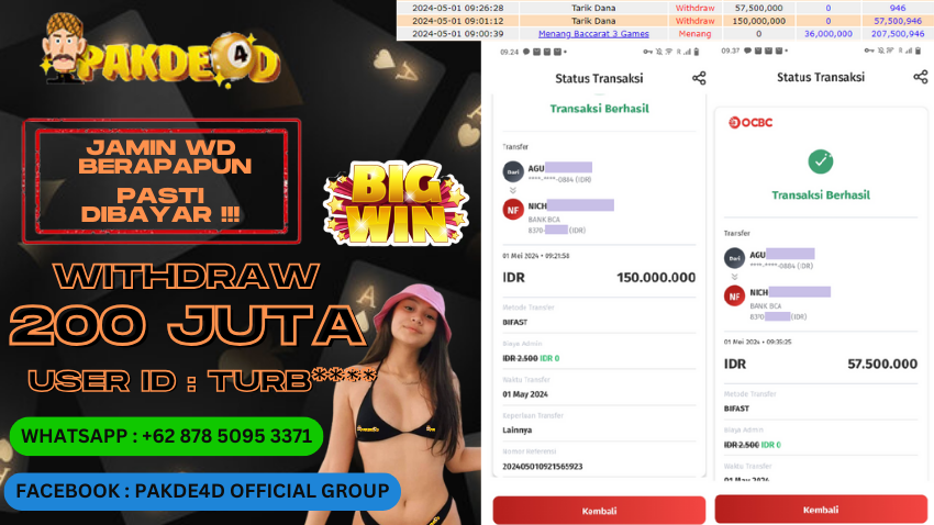 PAKDE4D JACKPOT DI PERMAINAN LIVE CASINO BACCARAT RP. 200.000.000,- LUNAS
