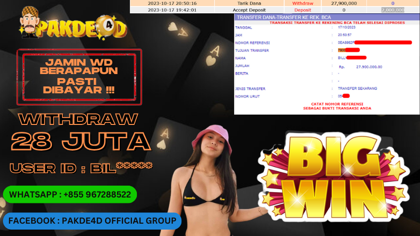 Selamat Kepada Member Setia PAKDE4D dengan USER ID : BIL*** di PERMAINAN SLOT sebesar Rp. 27.900.000,- LUNAS langsung mendarat ke rekening tanpa bertele – tele. Terimakasih telah mempercayakan PAKDE4D sebagai Situs Bandar Terpercaya dan Terjamin Aman! Tunggu apalagi? Daftar sekarang juga bersama PAKDE4D dan dapatkan berbagai promo menarik setiap harinya.