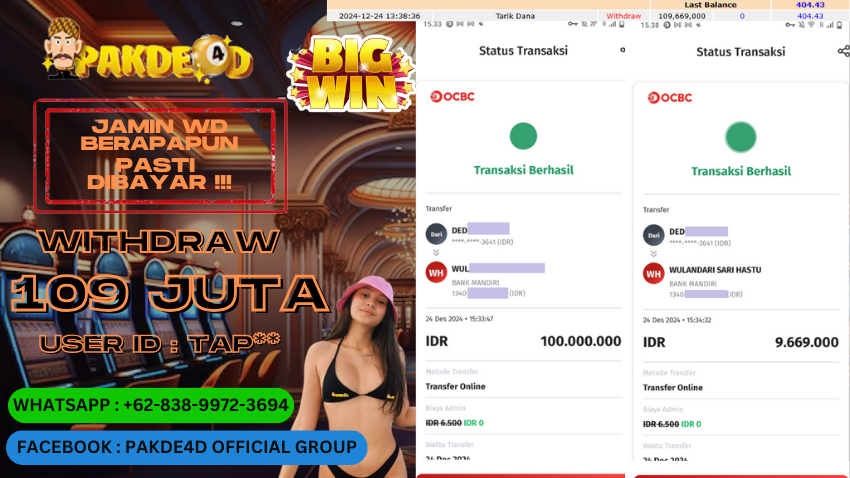 PAKDE4D JACKPOT DI PERMAINAN SLOT RP. 109.000.000,- LUNAS
