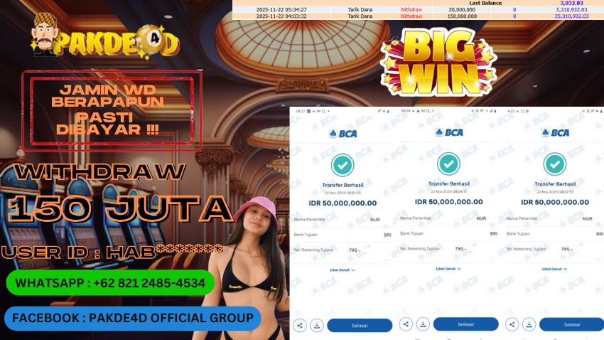 PAKDE4D JACKPOT DI PERMAINAN SLOT RP. 150.000.000,- LUNAS