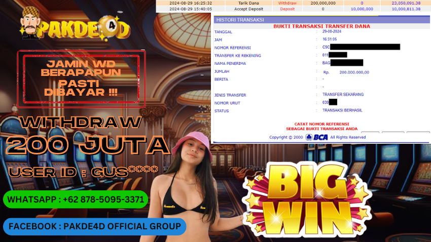PAKDE4D JACKPOT DI PERMAINAN SLOT RP. 200.000.000,- LUNAS
