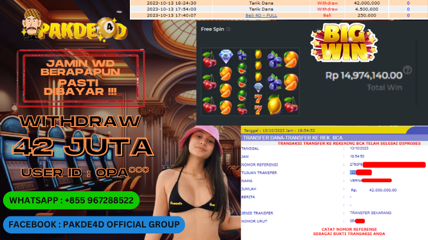 PAKDE4D JACKPOT DI PERMAINAN SLOT RP. 42.000.000 LUNAS