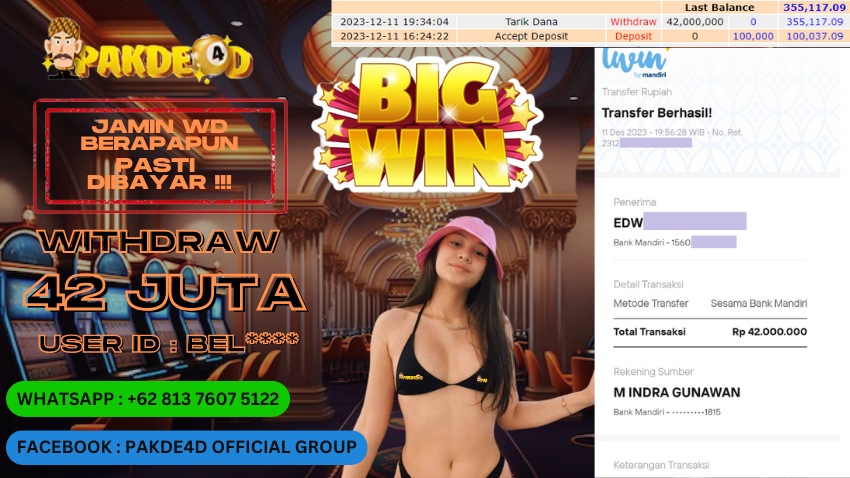 Selamat Kepada Member Setia PAKDE4D dengan USER ID : BEL**** di PERMAINAN SLOT sebesar Rp. 42.000.000,- LUNAS langsung mendarat ke rekening tanpa bertele – tele. Terimakasih telah mempercayakan PAKDE4D sebagai Situs Bandar Terpercaya dan Terjamin Aman! Tunggu apalagi? Daftar sekarang juga bersama PAKDE4D dan dapatkan berbagai promo menarik setiap harinya.